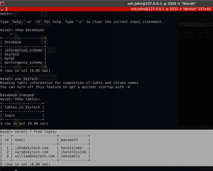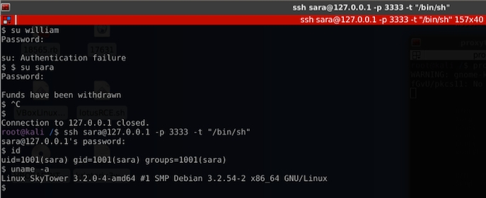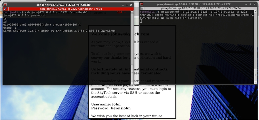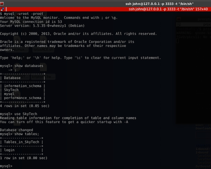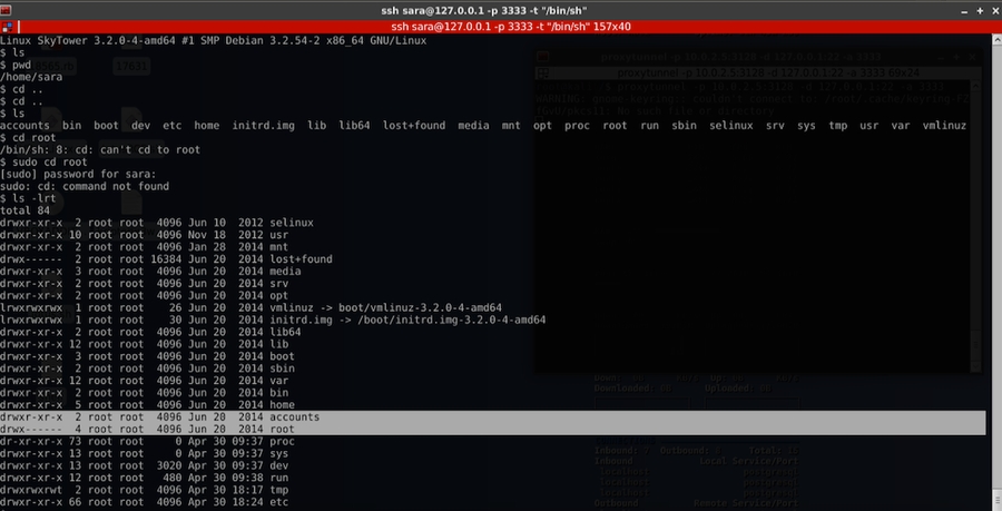 14-) Öncesinde SSH üzerinde john kullanıcısı ile bağlanırken yaptığımız proxytunnel’ı sara ile bağlanırken 3333.port üzerinde açıp aynı şekilde bağlanıyoruz.