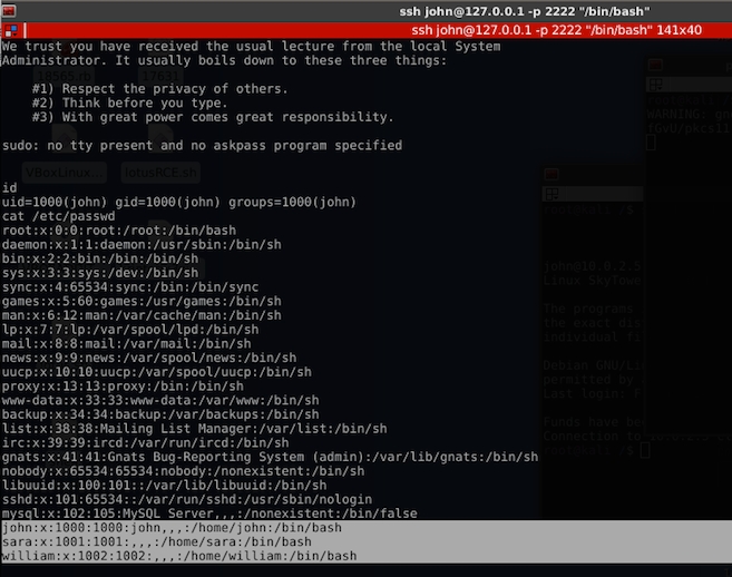 10-) /etc/passwd dosyasının içeriğini görüntülediğimizde sistemde 2 kullanıcının daha olduğunu görüyoruz. sara & william!