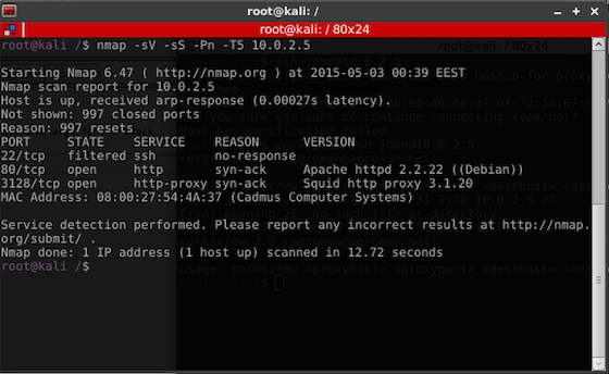 $ netdiscover -r 10.0.2.0/242-) Hangi portların açık olduğu ve nasıl yürüyeceğimize karar vermek için küçük bir nmap taraması yapıyoruz. Sonuç olarak SSH açık ancak filtered, ancak bir de 3128.port üzerinde proxy var. Yani temel olarak SSH erişimi için proxy kullanmamız gerekecek. Bir de 80 portundan yapılan bir web yayını var. Öncelikle web üzerinden gideceğiz. Çünkü SSH için elimizde herhangi bir parola yok.